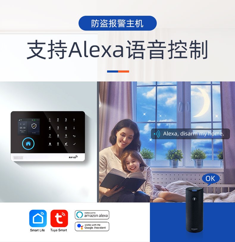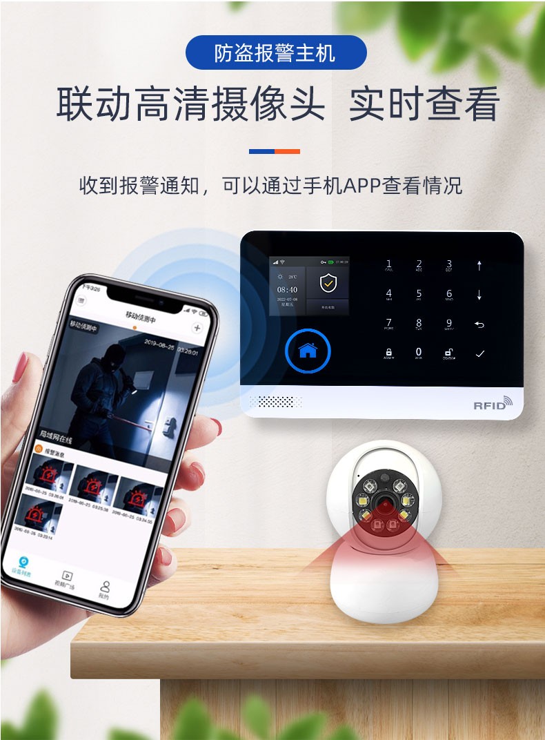 自带语音提示功能,支持9个常用国家语言支持接入涂鸦云,Alexa智能语音控制,APP推送自带高分贝警号,声音可达115dB,可选配太阳能户外声光警号