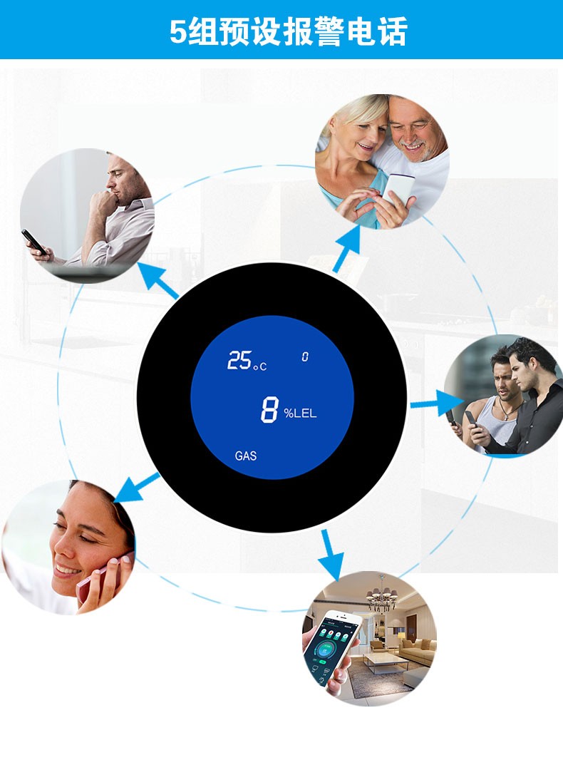 检测气体为:可燃气体、氢气、氨气、一氧化碳、二氧化硫、氧气、硫化氢等。