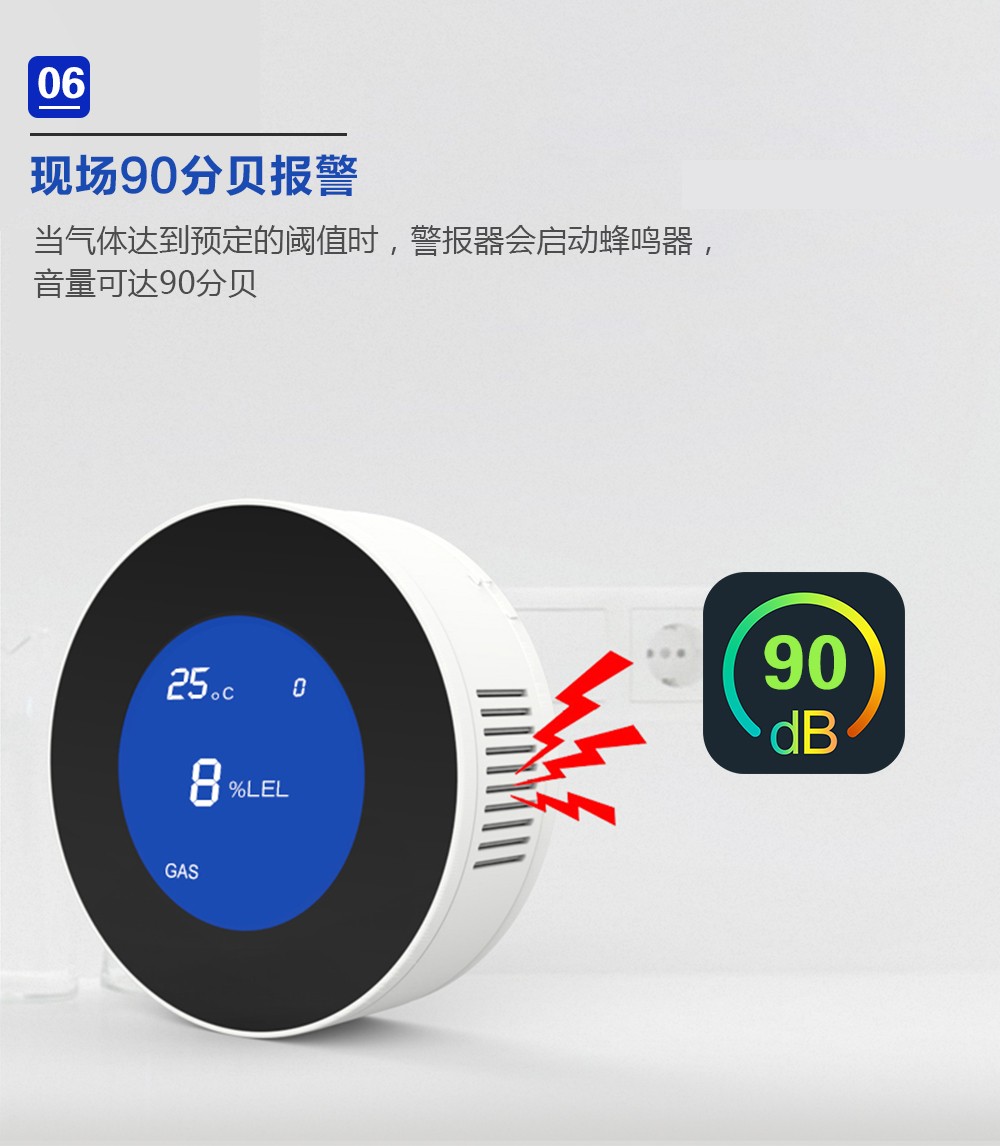 作为检测燃气泄露的重要设备,在生活中的运用是越来越广,当空气中的燃气浓度达到一定的数值,达到燃气报警器报警警戒值,就会发生报警,发出声光警号,提醒用户,可以及时的采取相应的措施,最快的速度去解决问题