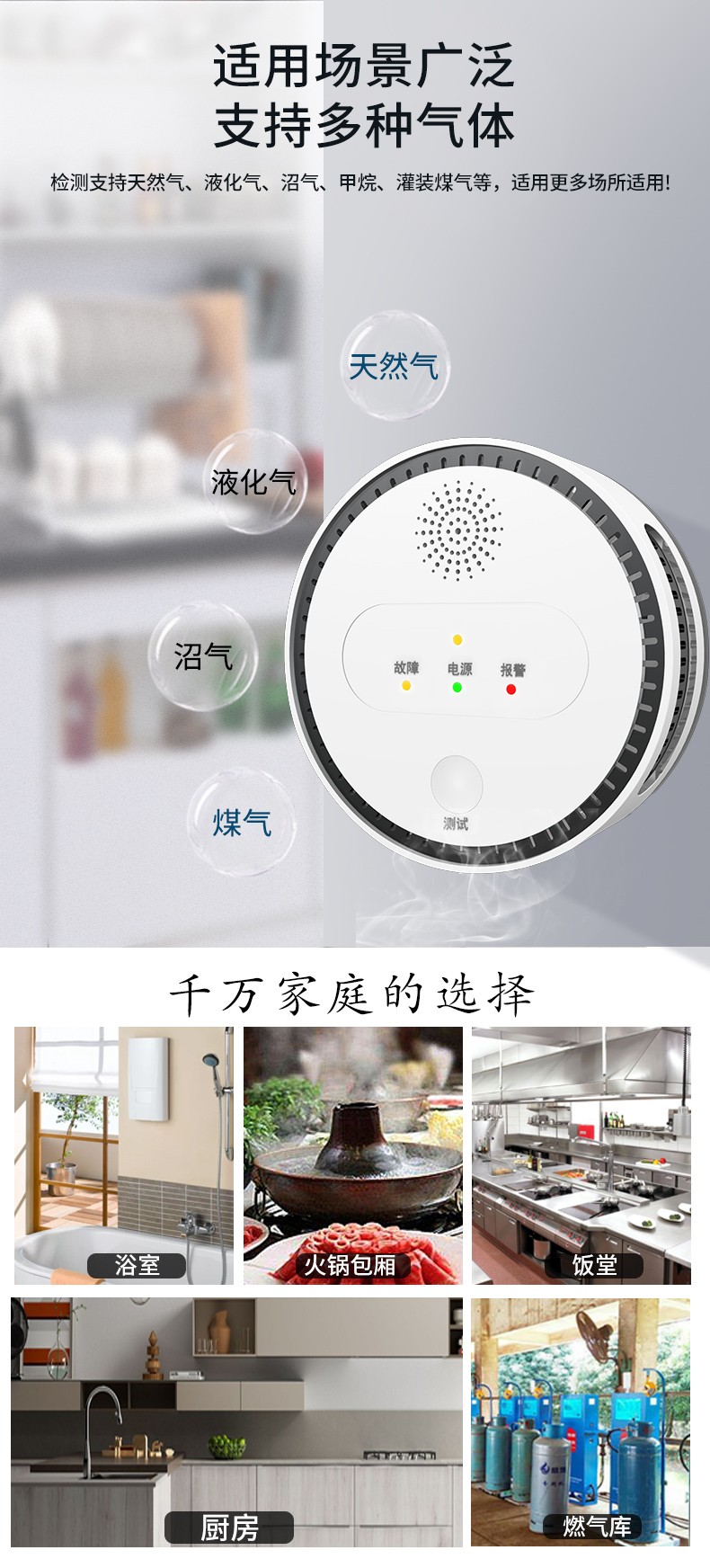 2.接通电源,绿灯亮起或闪烁3分钟后,报警器开始正常工作。