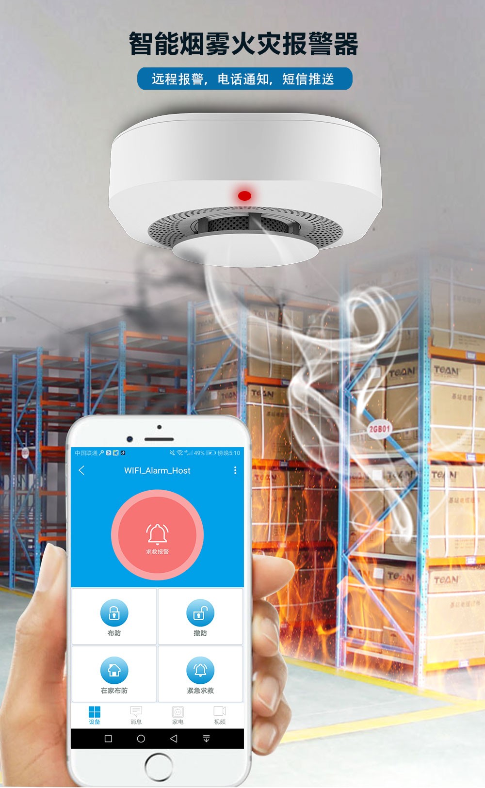 随着智能时代的到来,智能化产品也是多样化。例如,J9直营集团集团的智能烟雾报警器,在家庭安防报警系统中起到重要性作用。它一般会装在厨房和卧室的屋顶上,当家中有烟雾划是着火时,烟雾报警器会联动智能开关和智能插座控制的灯光和电器关闭,防止二次灾害的发生,同时手机客户端会收到报警信息,提示烟雾报警器发出报警信息,同时还可以联动电话拨号报警器拨打预设的几组报警电话,通知业主及小区保安家里有险情发生,进行及时处理,避免主人离家远不能处理的问题。如果用户家中拥有其他智能家居设备,并且设置了烟雾火警解决方案,烟雾火警探测器还可联动开启水阀,门窗,排风系统,对火情隐患进行处理,为用户争取宝贵时间,尽可能地降低家庭火灾发生危险。